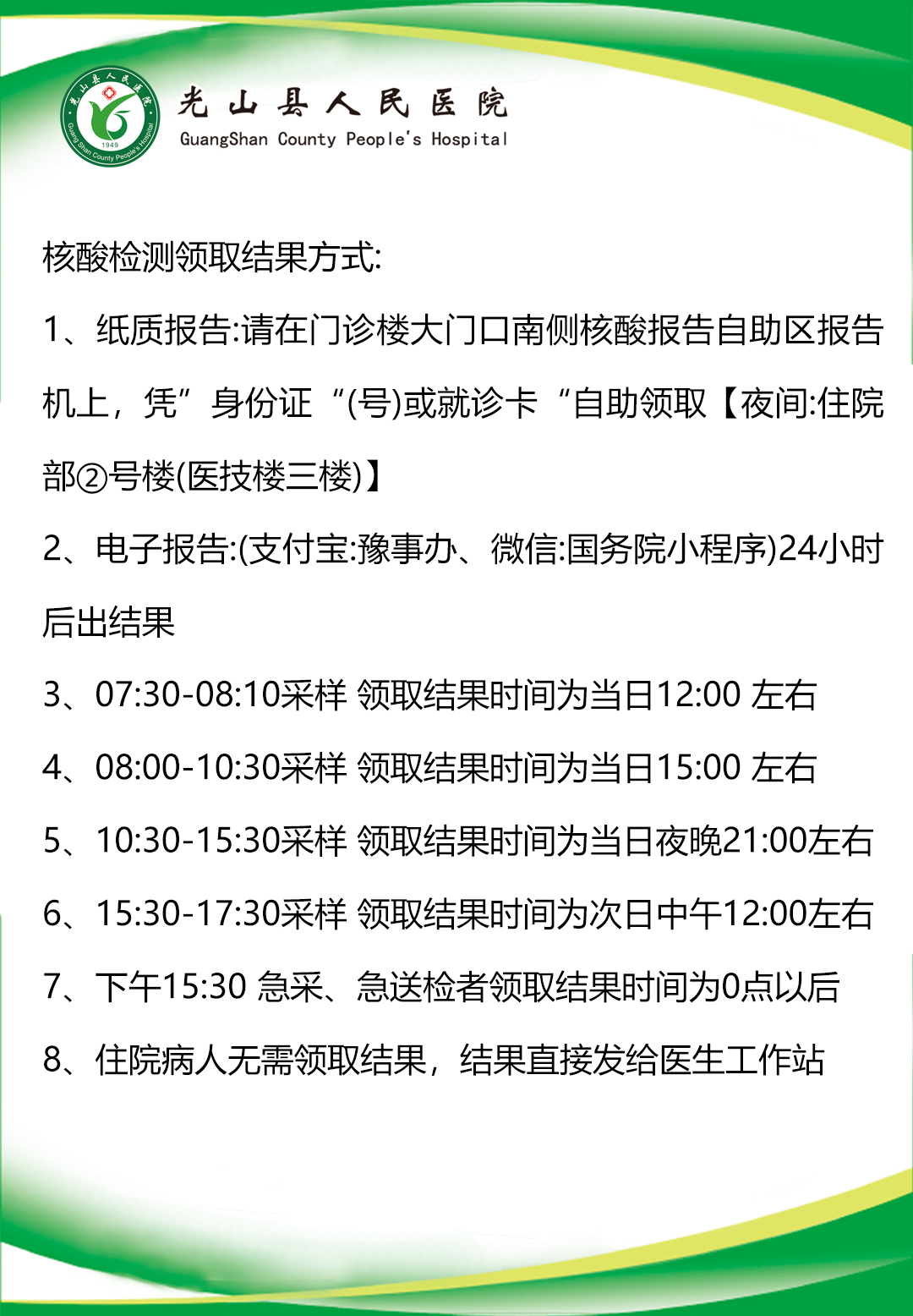 光山县人民医院核酸检测报告结果领取方式及报告时间