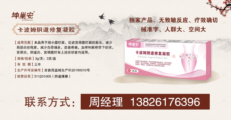 优势:独家产品,无致敏反应,疗效确切,械准字,市场需求量大,妇科诊所,妇科门诊,院外等均可操作